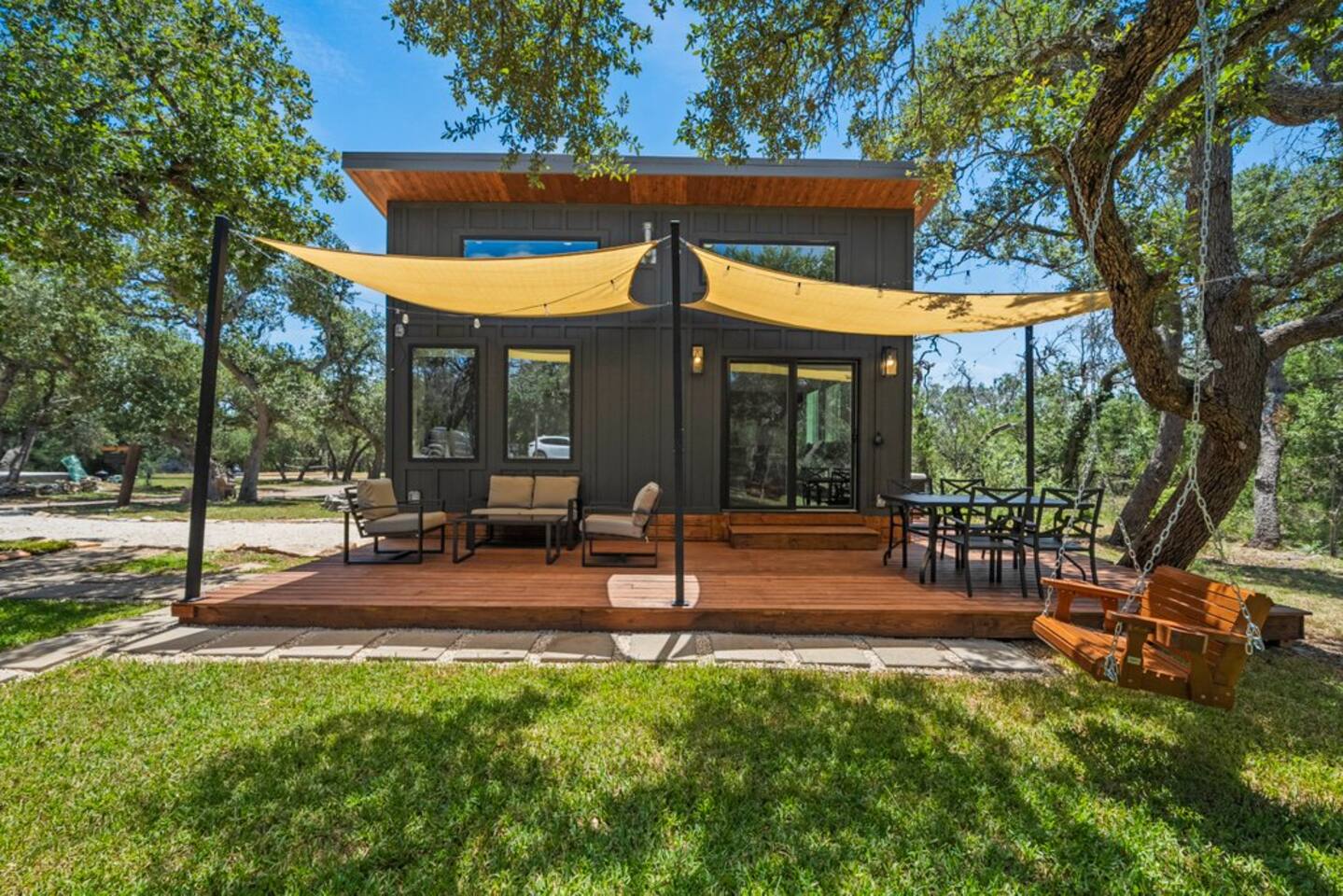 Welcome to your perfect escape in the heart of the Texas Hill Country! Our stylish, modern tiny home in Wimberley offers a serene blend of nature and relaxation, making it an ideal getaway for couples, families, or small groups. **This property has a second home on it that can be rented with Hope's Haven**